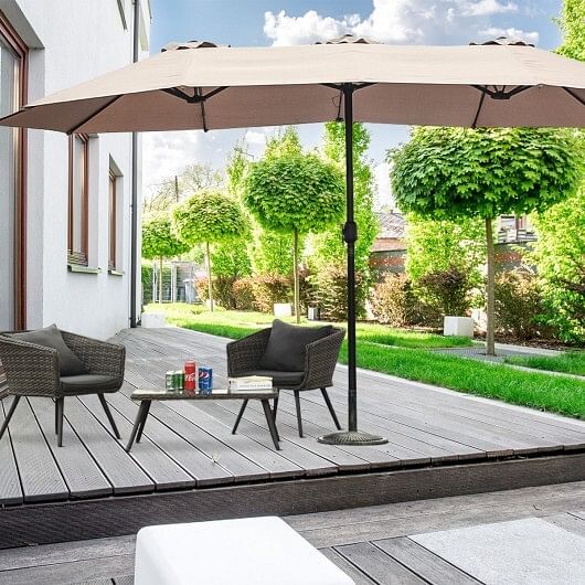 This is a brand new patio double -side umbrella covering large area which is your best choice to add shade during the warm weather conditions or you want to beat the rain or wind.