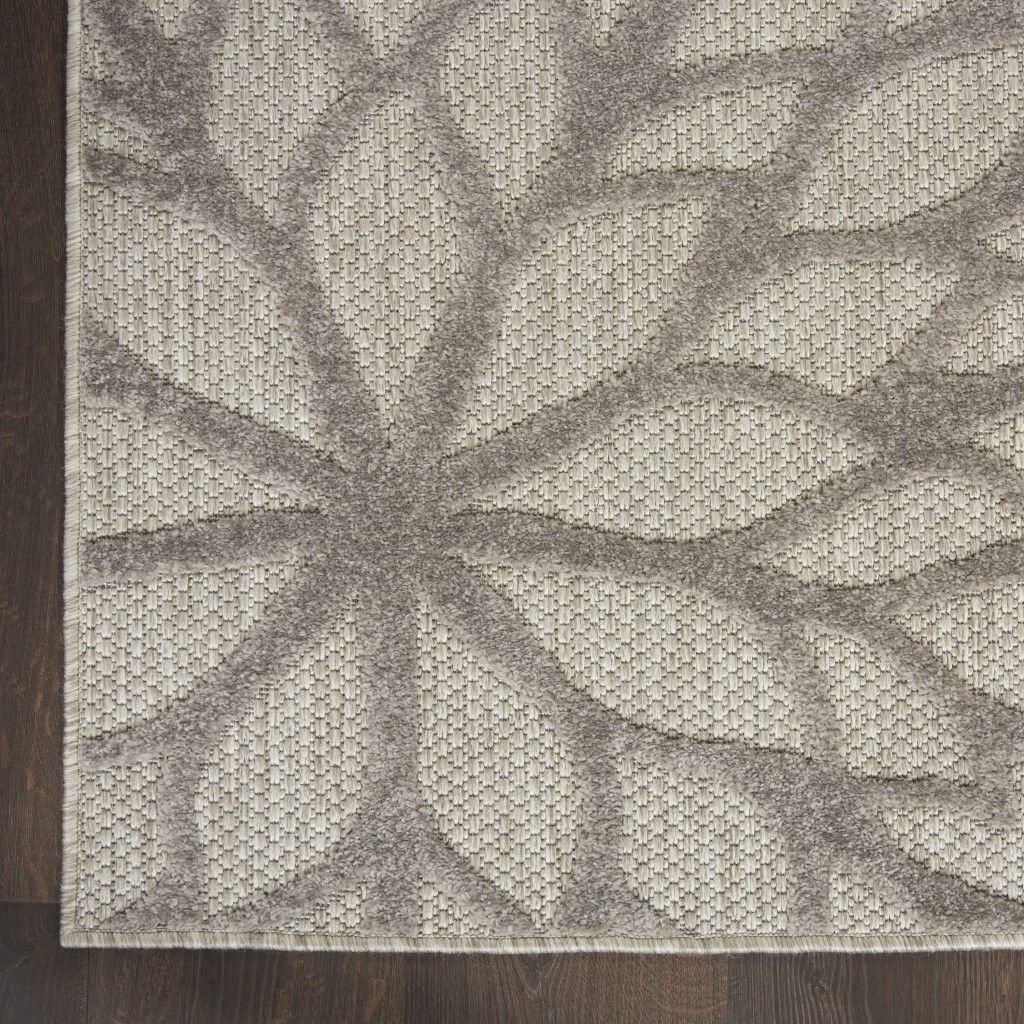 Evoke a calm and relaxing environment into your living space with the addition of this Silver and Gray Indoor Outdoor Area Rug that features a neutral color palette with nature-inspired patterns. Flaunting the oversized flowers with refined details in shades of silver and pebble gray over a sophisticated dove gray backdrop to create a visually elegant harmony. Made in Turkey, this rug is crafted with 100% premium polypropylene to ensure durability, stain resistance, and easy maintenance, making it suitable to stand up to high-traffic areas both indoors and out. The neutral color palette and soft-touch elements make it a great accent for patios and decks, giving a new layer of style to the exterior of your contemporary house. Combining on-trend hues with classic patterns, this area rug will seamlessly introduce a sleek and stylish tone to your home without overpowering its surrounding. 6′ x 9′